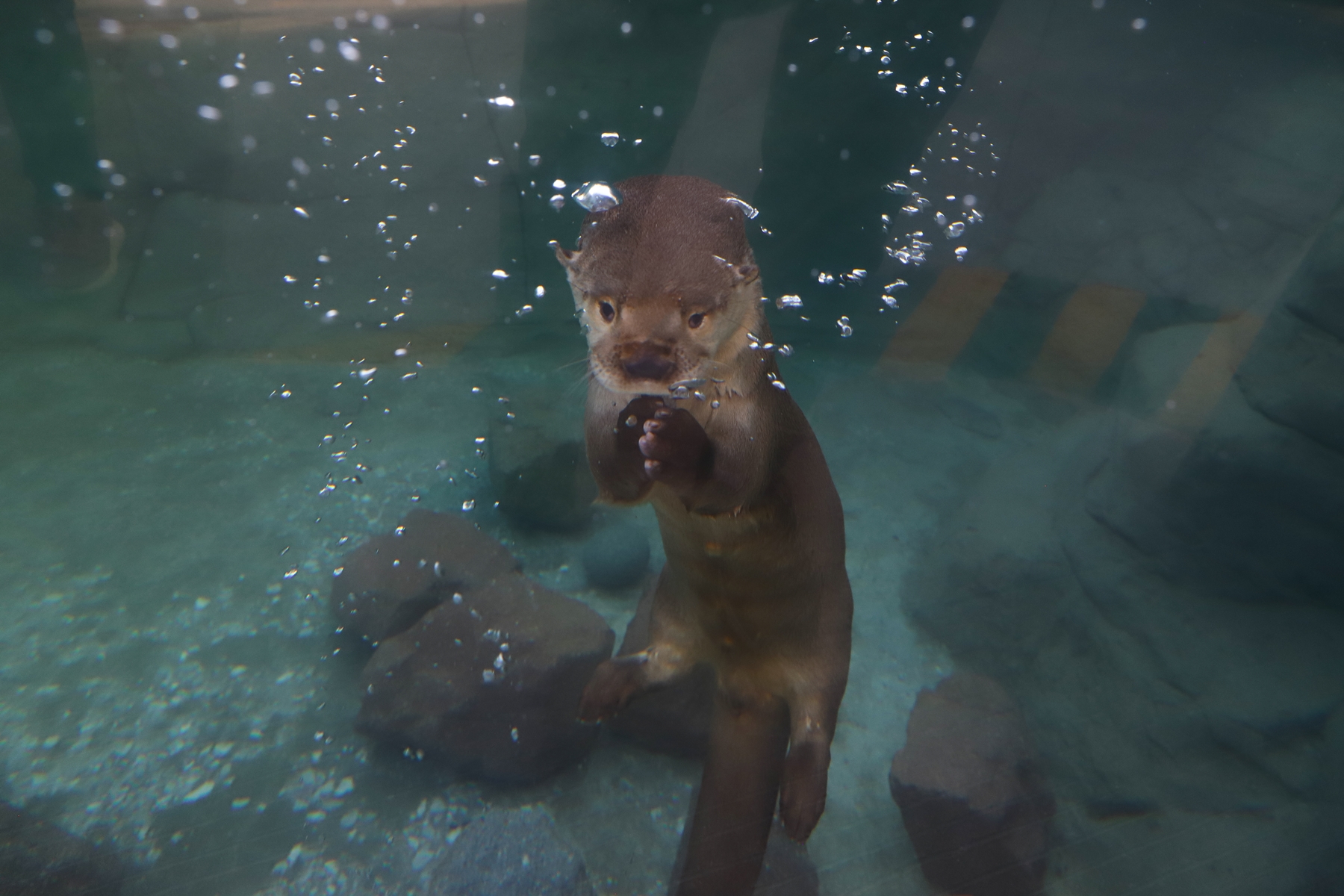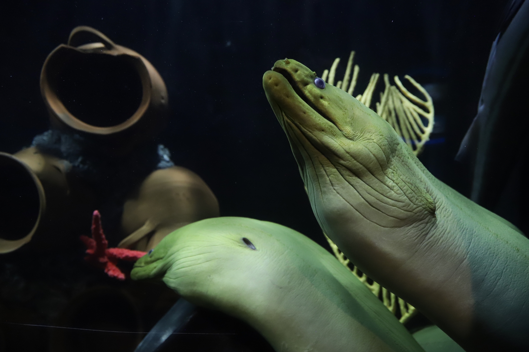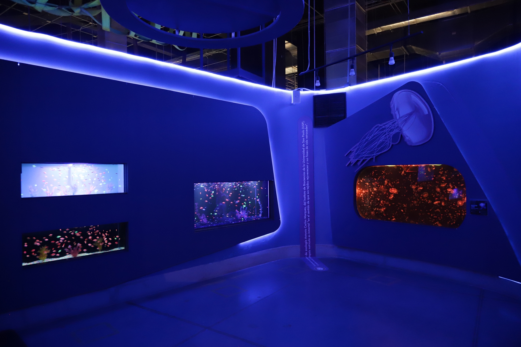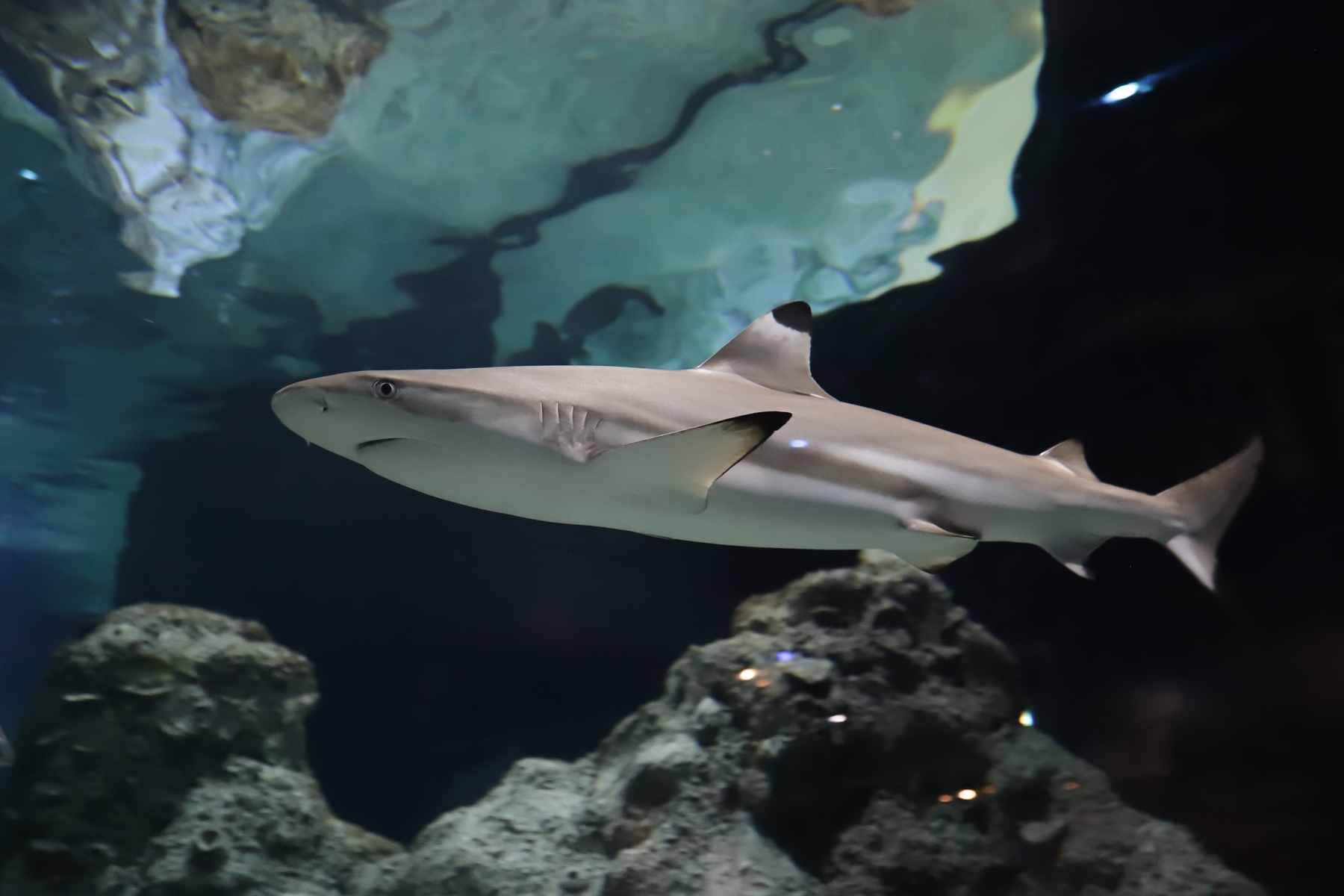 Y en la zona de mar abierto -con la pecera más grande de todo el acuario- poderosos tiburones con sus miles de filosos dientes.