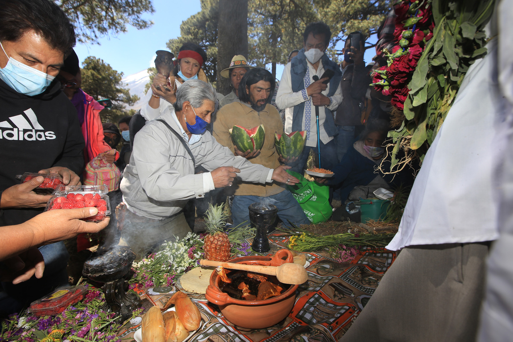 Hoy hubo una fiesta atípica. Hay una pandemia, hay un virus que amenaza, y a pesar de eso, hombres, niños, niñas y mujeres van rumbo al volcán junto al tiempero Antonio Analco, hijo y nieto de tiemperos.