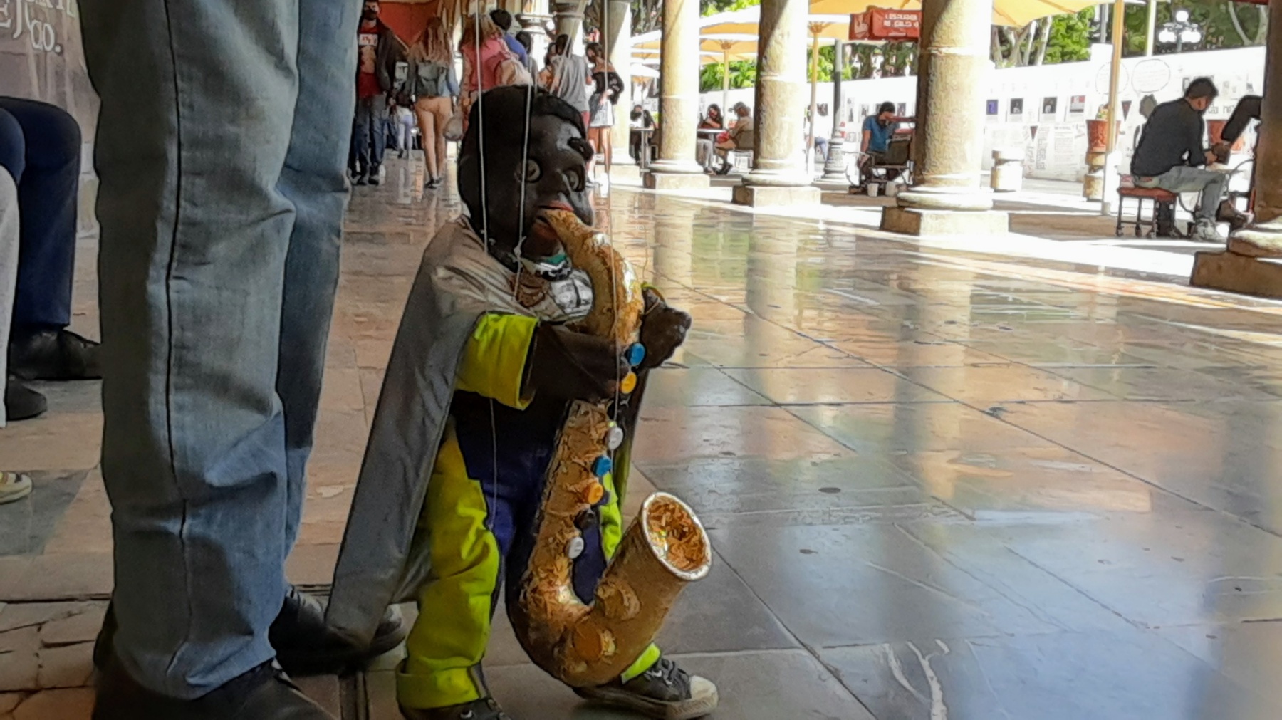 “Y él es un muñequito extraordinario, lo hemos vestido de muchas formas hasta de angelito, de Rey Mago, de la primavera, de Santa Claus, de cosas muy bonitas, y hasta ha estado en el Festival Internacional del Títere y ganó el primer lugar en Huamantla, Tlaxcala, porque se puso a consolidarse con los muñecos de allá”, presume Sarita desde el Portal Hidalgo.