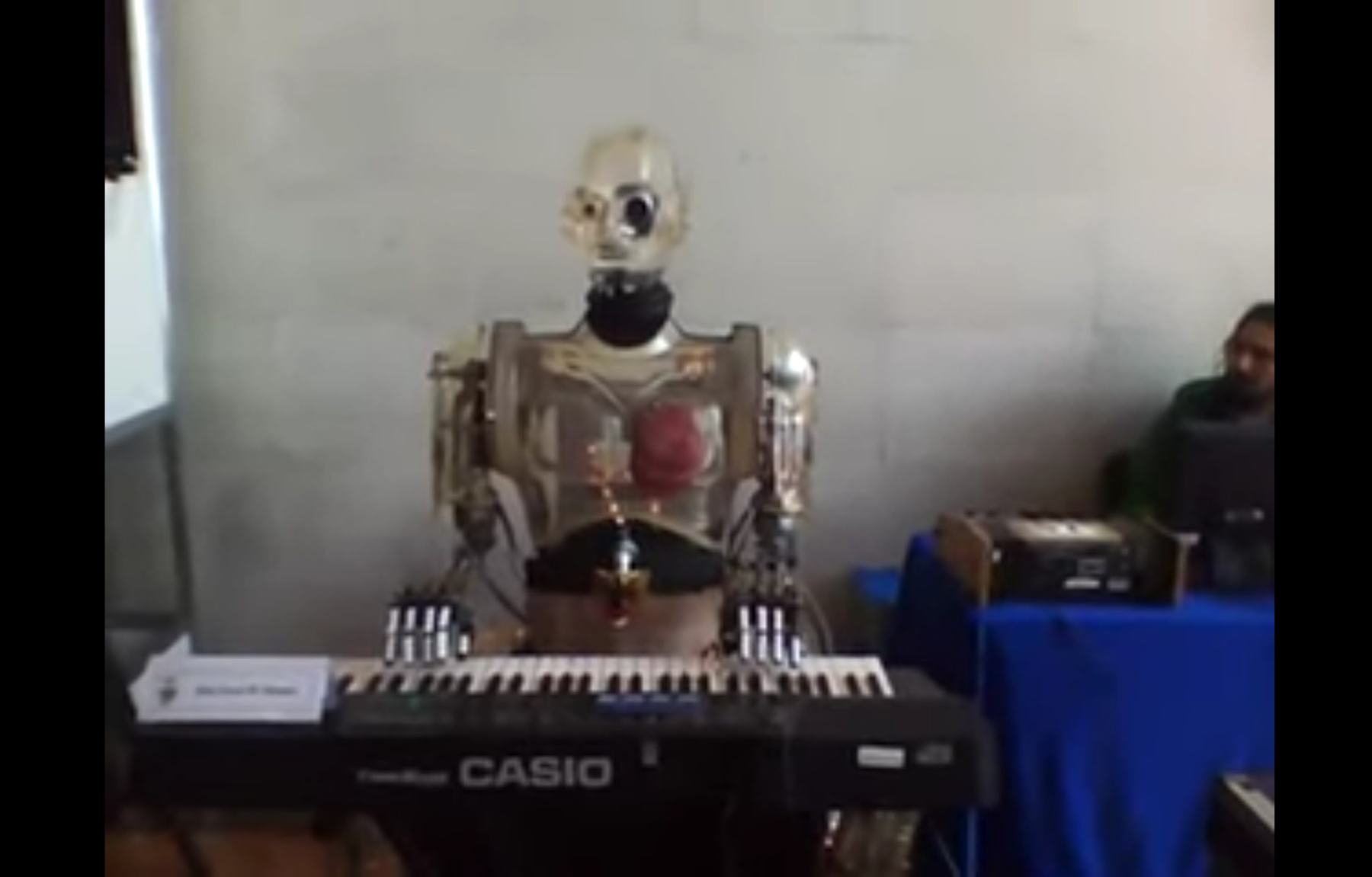 *En agosto de 1992, el famoso robot llegó a España como un pianista diseñado y construido en el Departamento de Microelectrónica del Instituto de Ciencias de la BUAP