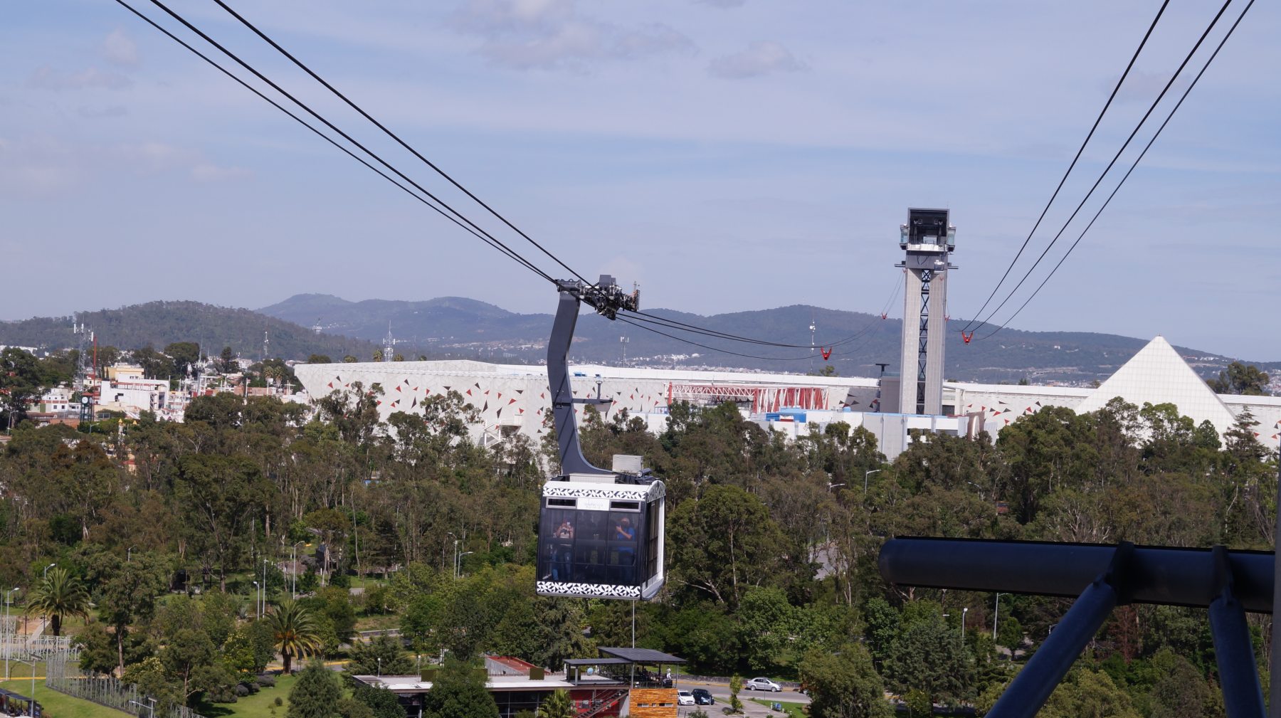 El viaje en la cabina es a paso lento, para recorrer los 688 metros de un cable que sostiene la góndola, recorrido en el que se disfruta de los árboles que abundan la zona arbolada del cerro.