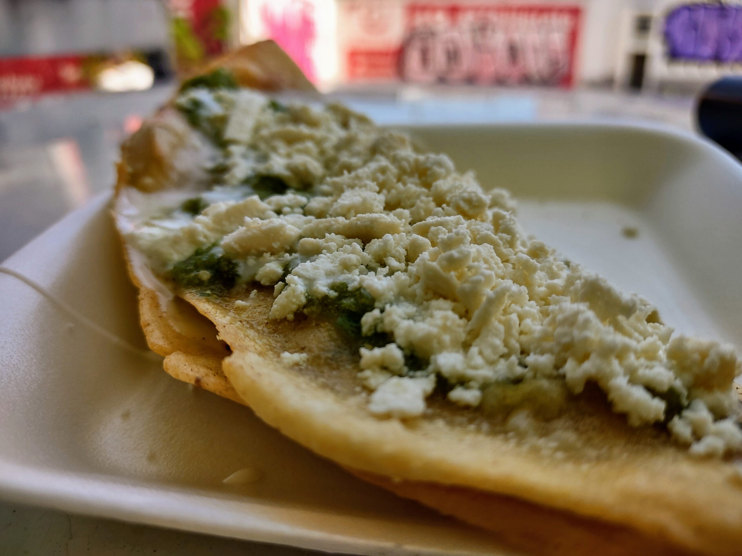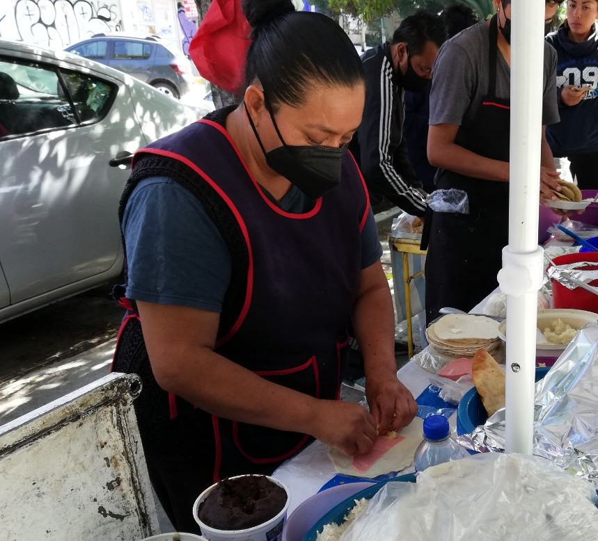 Su oferta gastronómica podría parecer la de cualquier otro puesto en medio de la amplia oferta de la capital poblana, pero lo que destaca a María es su amabilidad y una sonrisa que se identifica aun con un cubrebocas en la parte baja de su rostro. Aunque también su fama se debe al precio que ha mantenido: a 10 pesos cada uno de los antojitos.