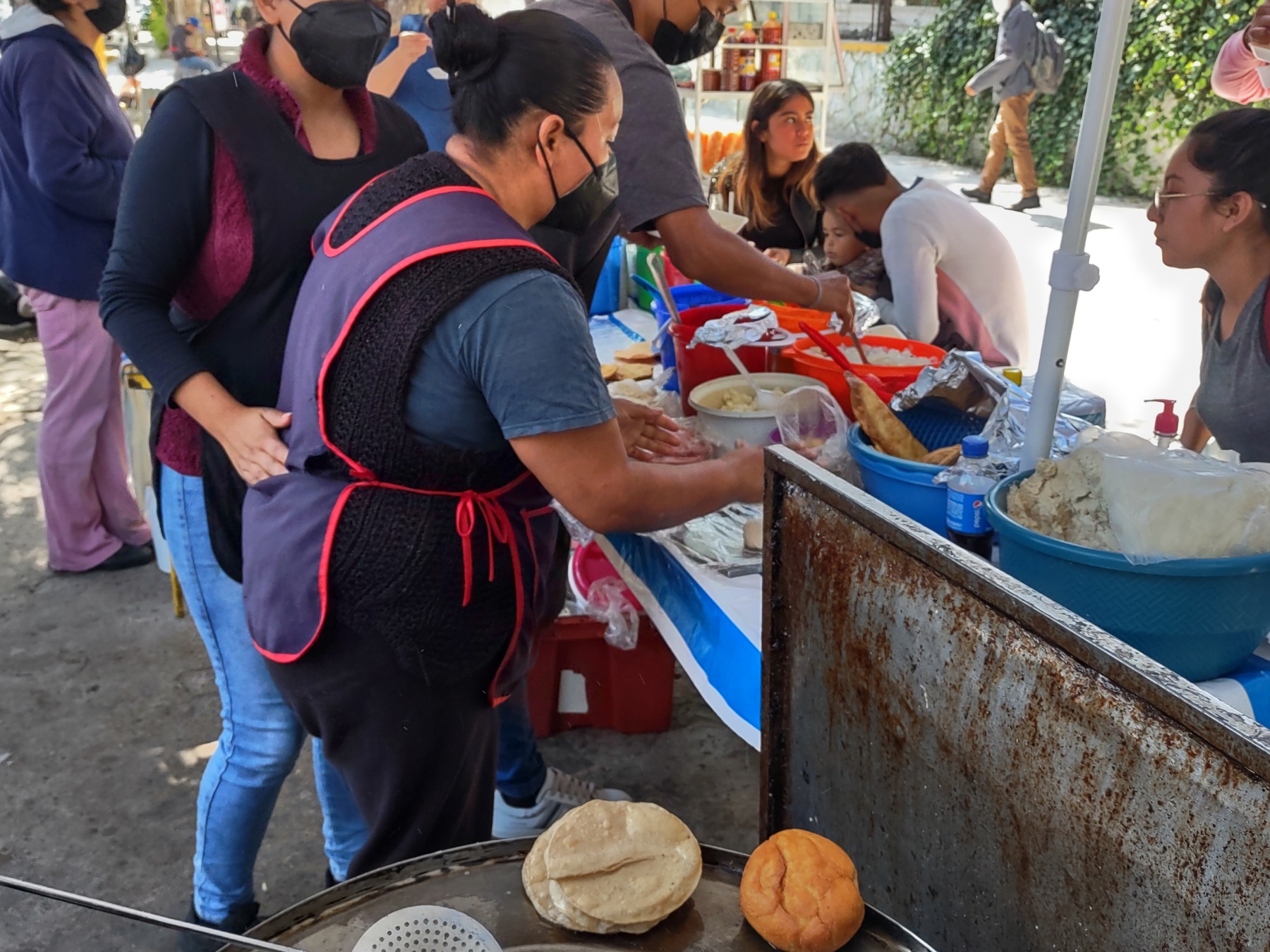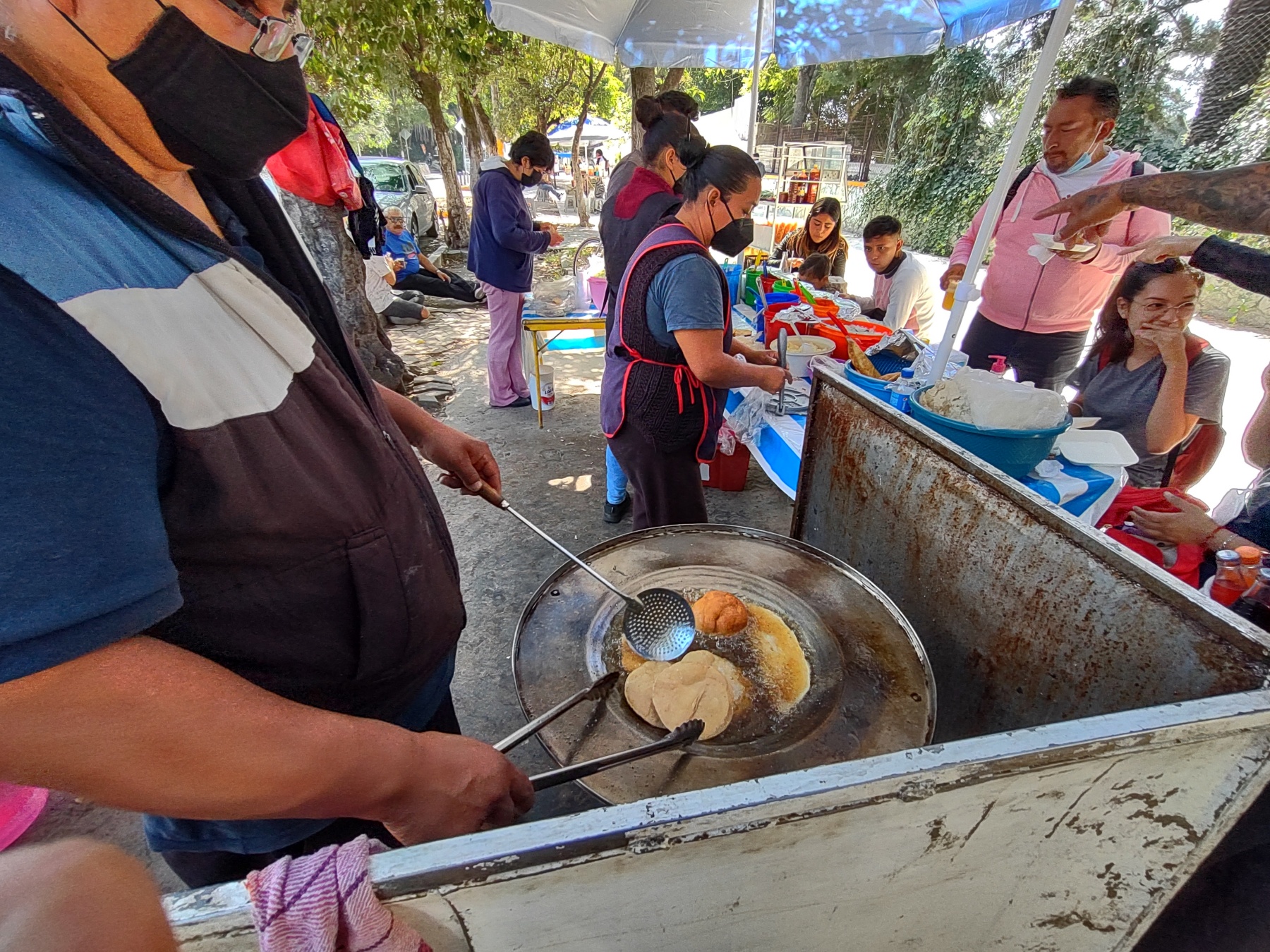 *A las afueras del Centro Escolar Niños Héroes de Chapultepec (CENHCH), cientos de personas disfrutan de pelonas, jarochitas y tostadas