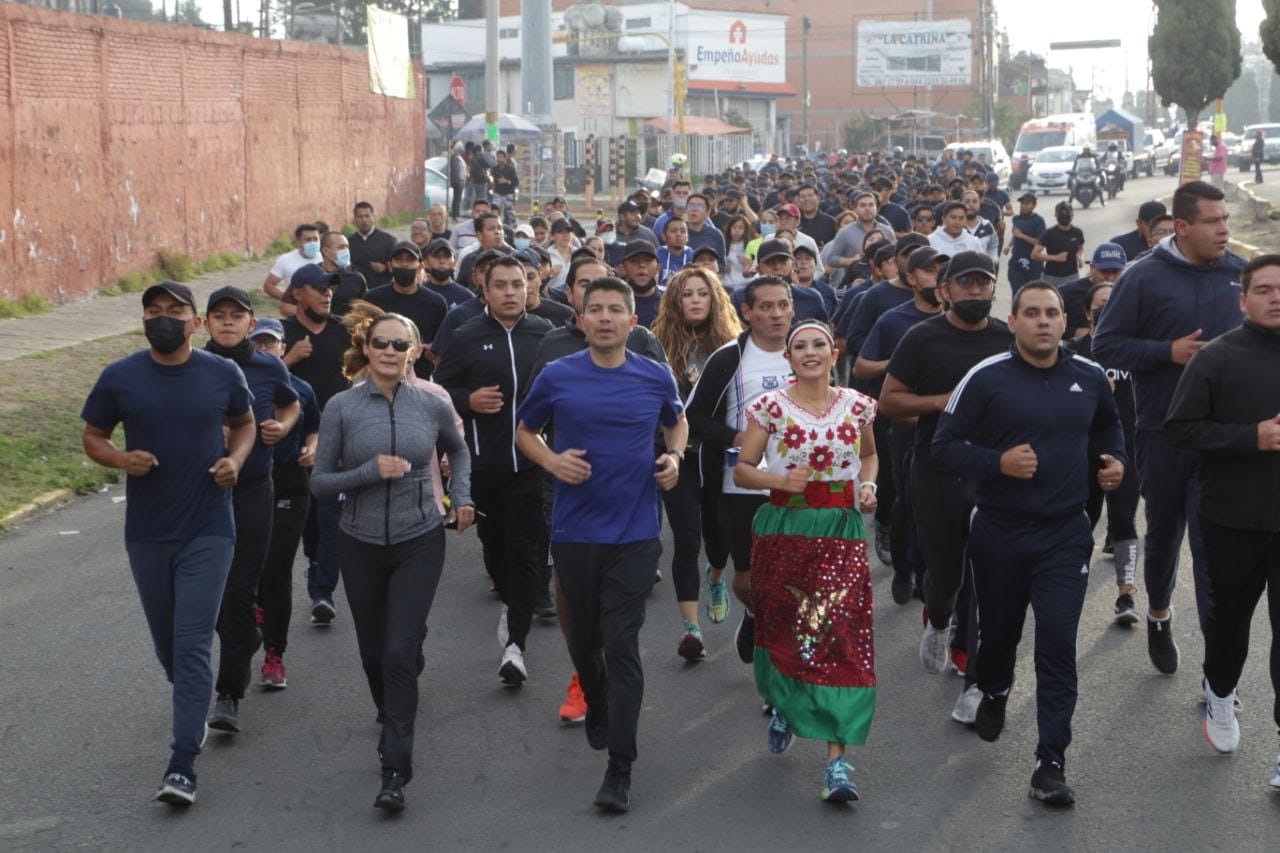 Puebla, Pue. – Con el objetivo de promover la actividad física y como un ejercicio de acercamiento, Eduardo Rivera Pérez, Presidente Municipal, encabezó la cuarta carrera con cadetes de la policía y jóvenes funcionarios en las calles de la colonia Bosques de San Sebastián, siendo la Academia de Seguridad Pública el punto de encuentro.