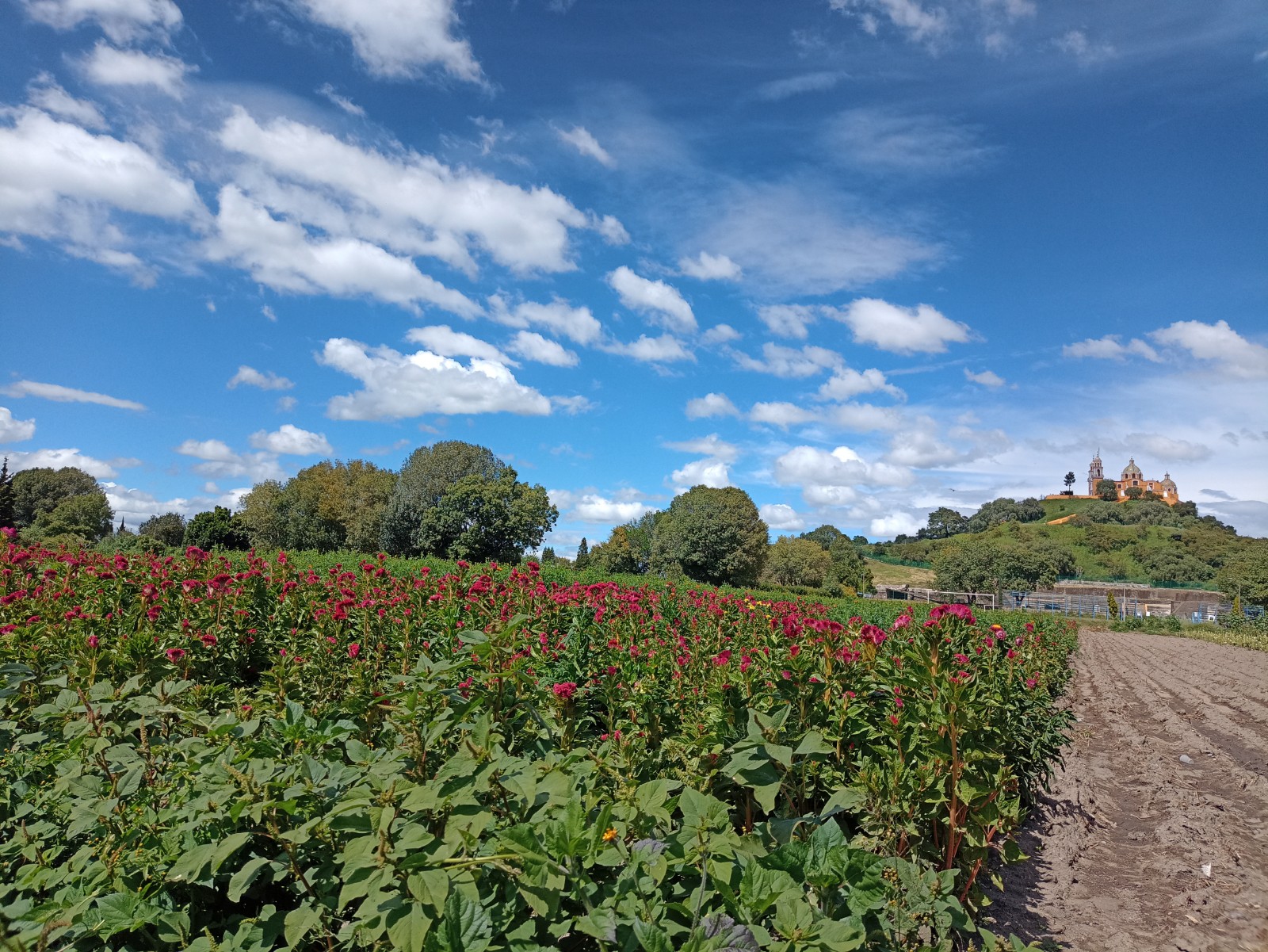Cada año, a inicios de octubre, gran parte de los campos de San Pedro y San Andrés Cholula suelen pintarse de morado y naranja. Los productores que las cultivan cuidan de ellos noche y día para que a finales del mes puedan recogerlas y llevarlas a los mercados y tiendas para su comercialización.