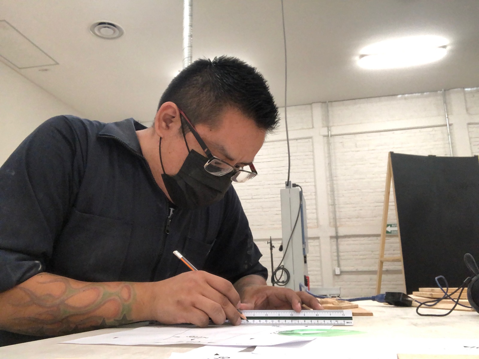 “Desde el inicio me di cuenta que tenía esta habilidad, que acompaña el diseño gráfico de manera física, cuando crearon la nueva empresa desarrollaron las tres técnicas, con el manejo de materiales, como que me dijeron que me tenía que quedar en esa área, y a partir de ahí me dejé llevar”.