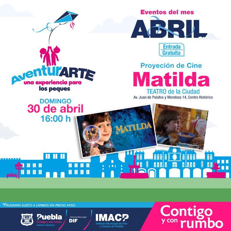 El domigo 30 de abril continúa la diversión en el Zócalo de la Ciudad con la música de la Banda Sinfónica Municipal en punto de las 12:00 horas, seguido de la divertida actuación de “Moroshoow Circo y Comedia” a las 13:00 horas; una hora más tarde, celebra el Día del Niño y la Niña escuchando cuentos cargados de fantasía, aventura y diversión a cargo de la Compañía Bravías. Para seguir festejando se proyectará “Matilda” en el Teatro de la Ciudad, la función empieza a las 16:00 horas.