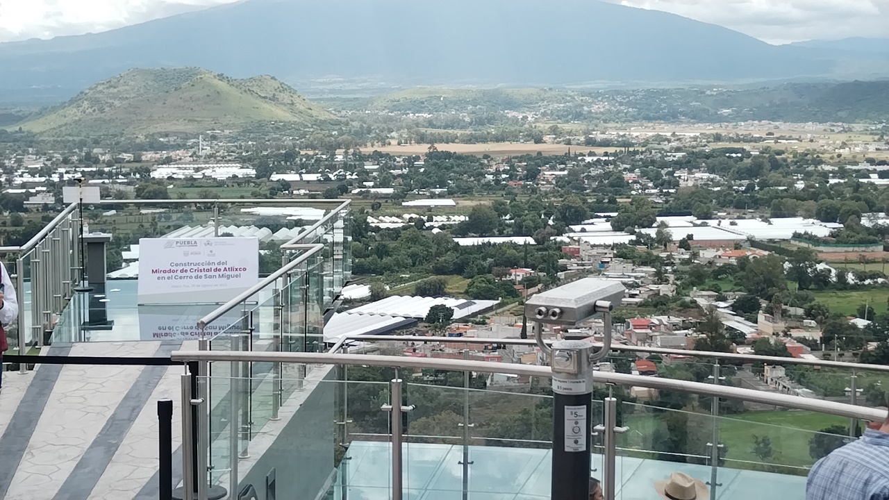 Es el Mirador de cristal recientemente inaugurado en el Pueblo Mágico de Atlixco, que se asienta en el Cerro de San Miguel, localizado a 3 mil 754 metros sobre el nivel del mar.  El sendero que conduce al atractivo está rodeado de árboles de distintas especies, lo que da una sensación de estar en uno de los nuevos pulmones imprescindibles de la entidad poblana.