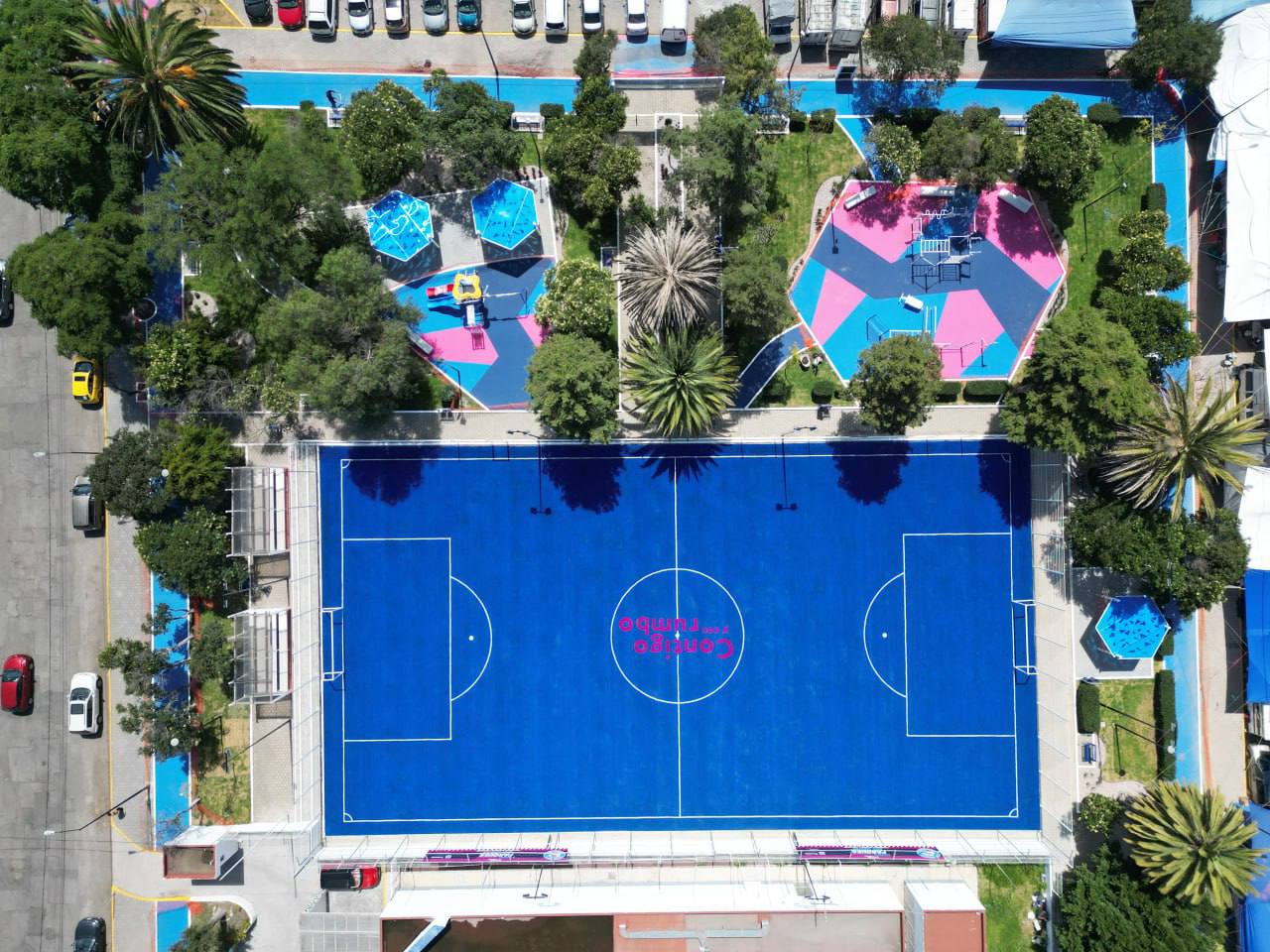 Y es que este complejo se estrenó con una nueva cancha de fútbol con pasto sintético, gradas, trotapista, juegos infantiles, área canina, equipo de calistenia y demás mobiliario urbano que ahora permite el disfrute en familia y la actividad física de miles de personas de esta demarcación.