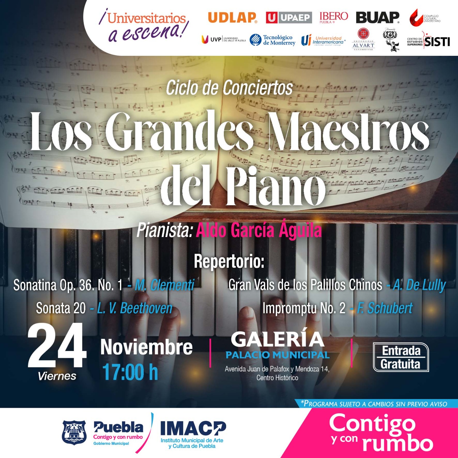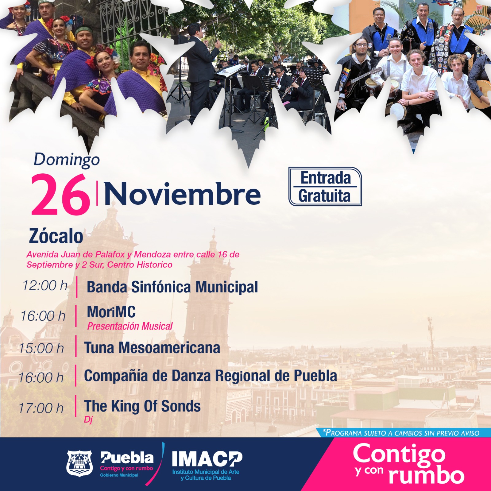 Toda la programación se puede encontrar en las redes sociales del Ayuntamiento @PueblaAyto y @IMACP, al igual que en la página oficial de pueblacapital.gob.mx.