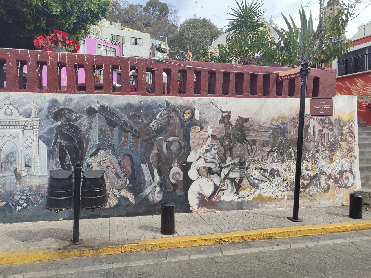En los cuatro puntos donde voltees, hay una vista magnífica: atrás murales con la historia del municipio y su gente, enfrente con suerte y sí está despejado el resto de Atlixco desde las alturas e incluso los volcanes, y a un costado el majestuoso templo de San Francisco.