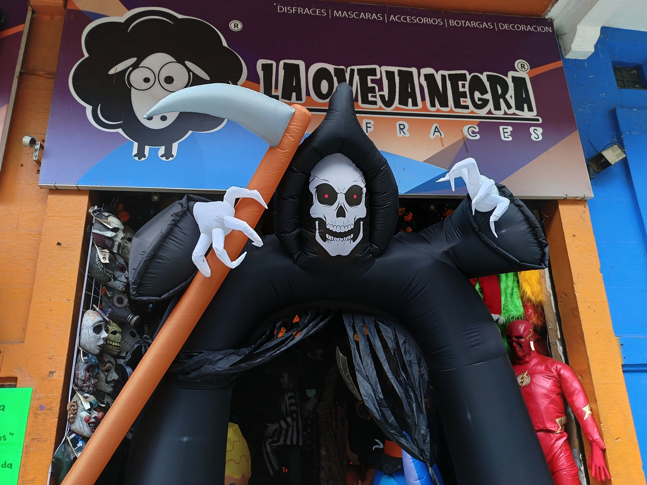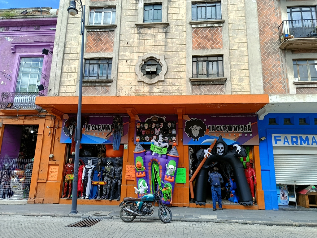 *En La Oveja Negra, una tienda-museo de disfraces de la ciudad de Puebla, conviven en un solo espacio Michael Myers, Fredy Krueger, Ghostface, Pennywise, Chucky, Frankenstein, Annabelle y muchos personajes tenebrosos
