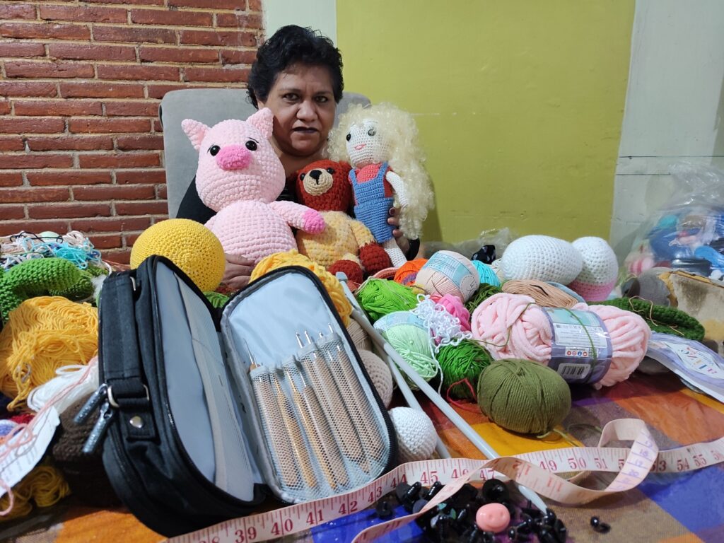*Aprendió a tejer en la primaria y tras su retiro como empleada de la BUAP lo retomó y aprovechando la...